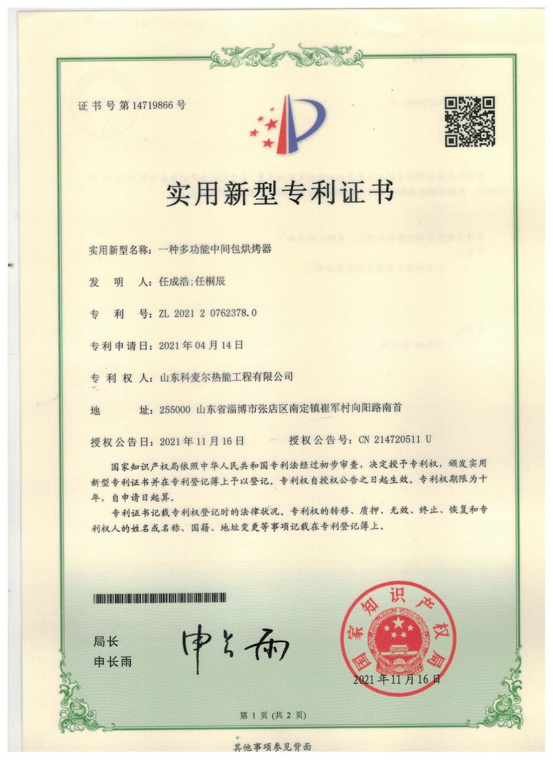 中間包烘烤器:包括燃燒器、鼓風機、助燃風管道系統和煤氣管道系統,所述助燃風管道系統一端連接鼓風機,另一端接入位于燃燒器前的煤氣管道系統,還包括通過控制煤氣管道閥門開閉自動調節溫度的控制系統,所述燃燒器為1-5個(根據膜胎尺寸確定),中間包工作層受熱均勻,易脫模節能效果明顯。